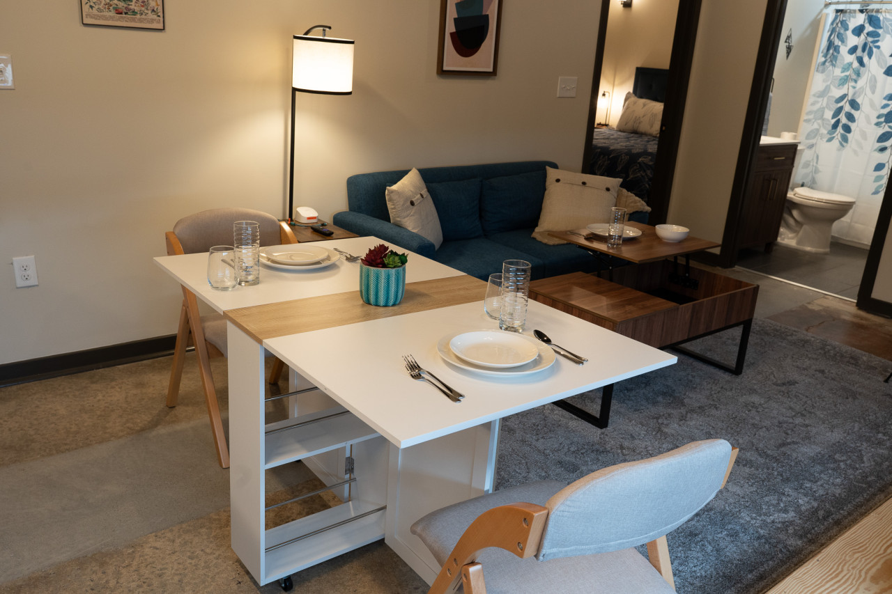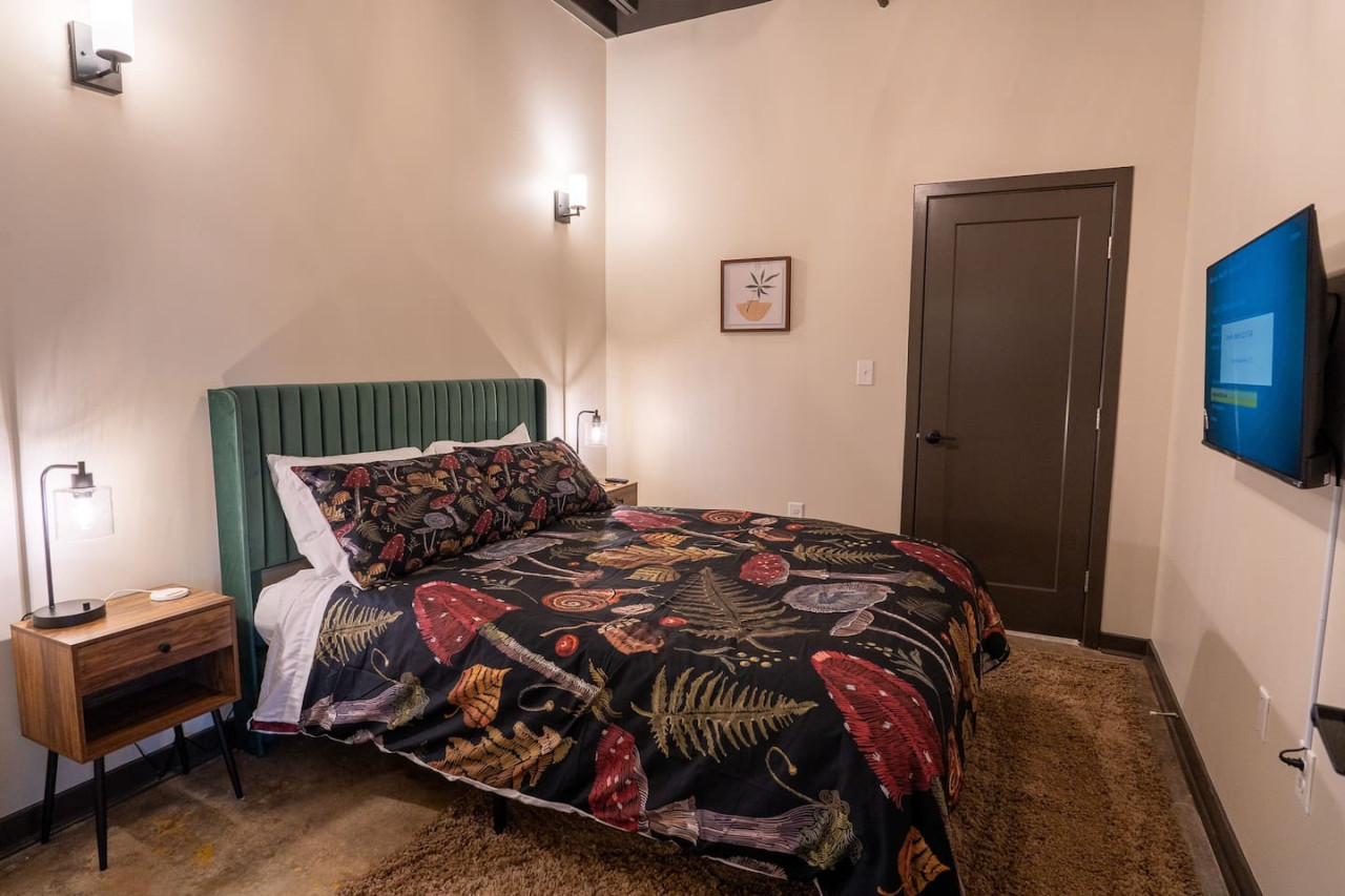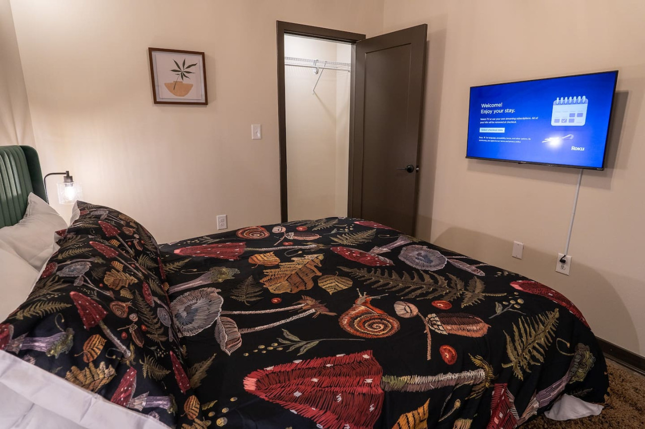 / nightExperience spacious comfort in our unique combined unit located in historic Uptown Martinsville, Virginia. This ground-floor rental merges two adjacent 1-bedroom apartments into one expansive space, perfect for families or groups seeking extra room. Each apartment features a full kitchen with new appliances, modern furnishings, and a cozy living area equipped with fast fiber internet and streaming TVs in both the living rooms and bedrooms. Rest easy on comfy queen memory foam beds after a day of exploring. Situated in a safe, walkable neighborhood, you're just steps away from charming shops, local eateries, and cultural attractions. Enjoy the convenience of free on-site parking and easy ground-floor access. This combined unit offers the perfect blend of modern amenities and historic charm, ensuring a comfortable and memorable stay in Uptown Martinsville.