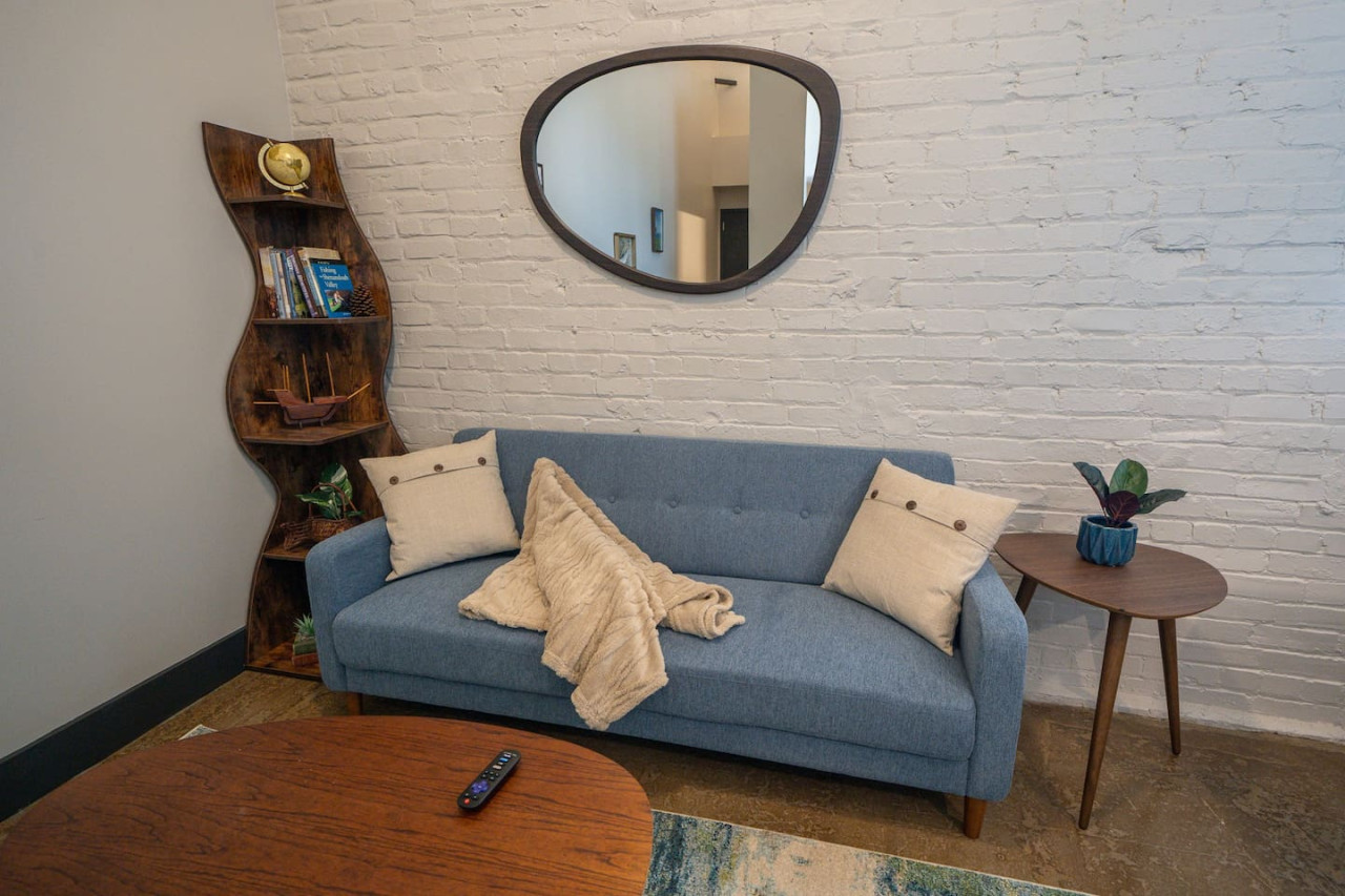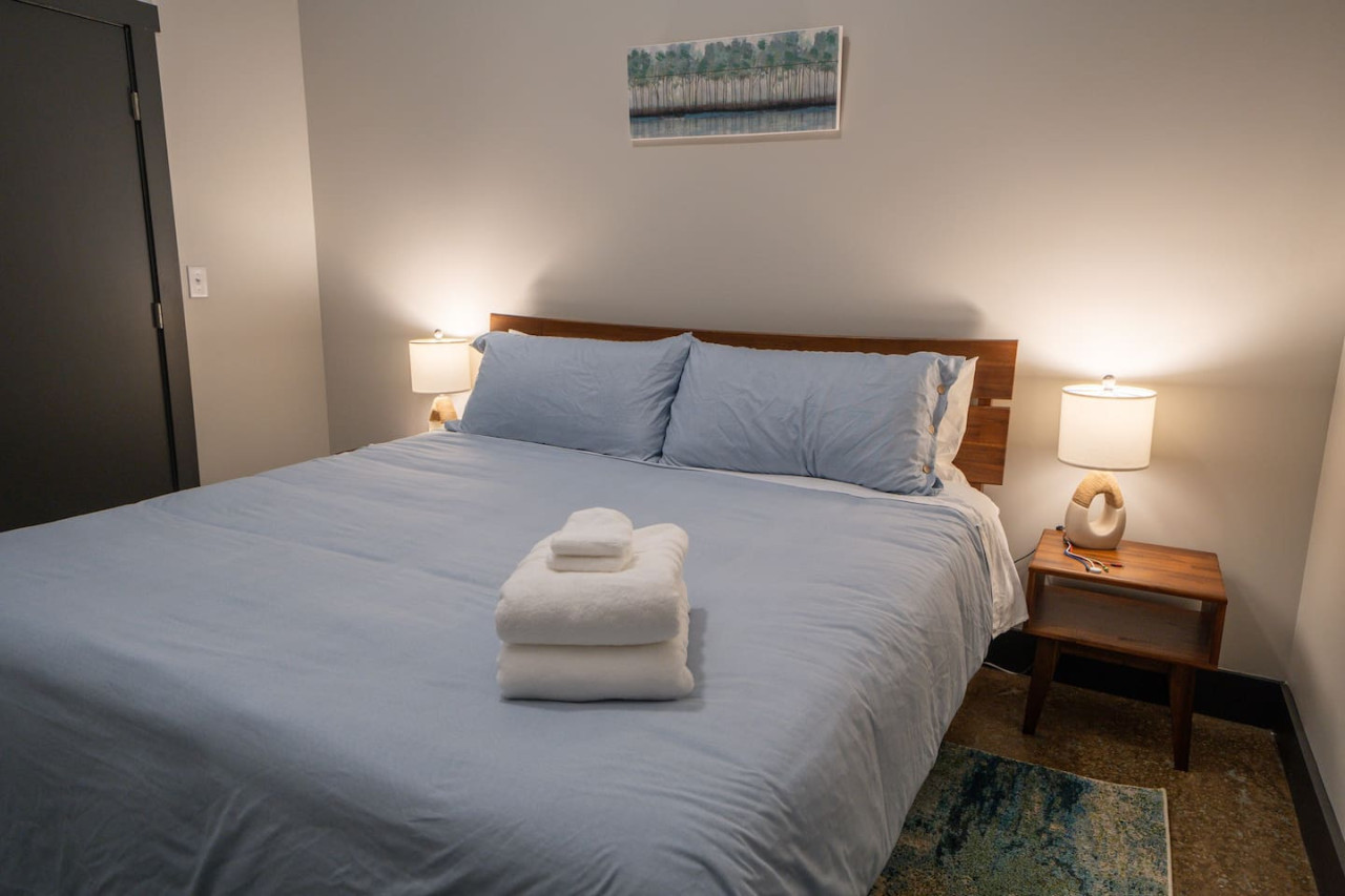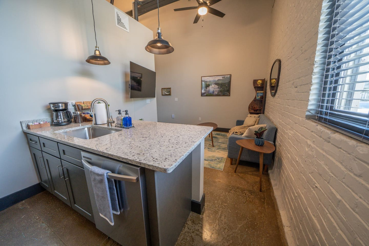 / nightWelcome to Factory Flats, a newly remodeled 1-bedroom apartment located in the heart of downtown Buchanan, Virginia. This stylish and modern apartment offers all the comforts and conveniences you need for a perfect stay. Inside, you'll find brand new furnishings, including a deluxe king memory foam bed and two TVs—one in the living room and one in the bedroom. Relax and unwind in the beautifully designed space, equipped with everything you need to feel at home. Factory Flats boasts a prime location with a brewery on site, providing a great spot to enjoy local craft beers. You'll also have quick access to the James River, perfect for outdoor activities and scenic views. The apartment is walkable to downtown attractions, allowing you to explore the charming shops, restaurants, and sights of Buchanan with ease. Experience the perfect blend of comfort, convenience, and style at Factory Flats. We look forward to hosting you!