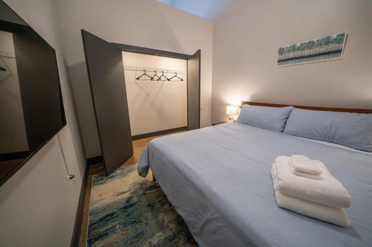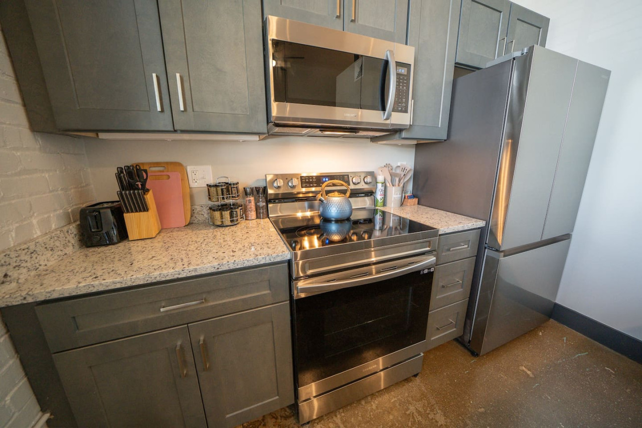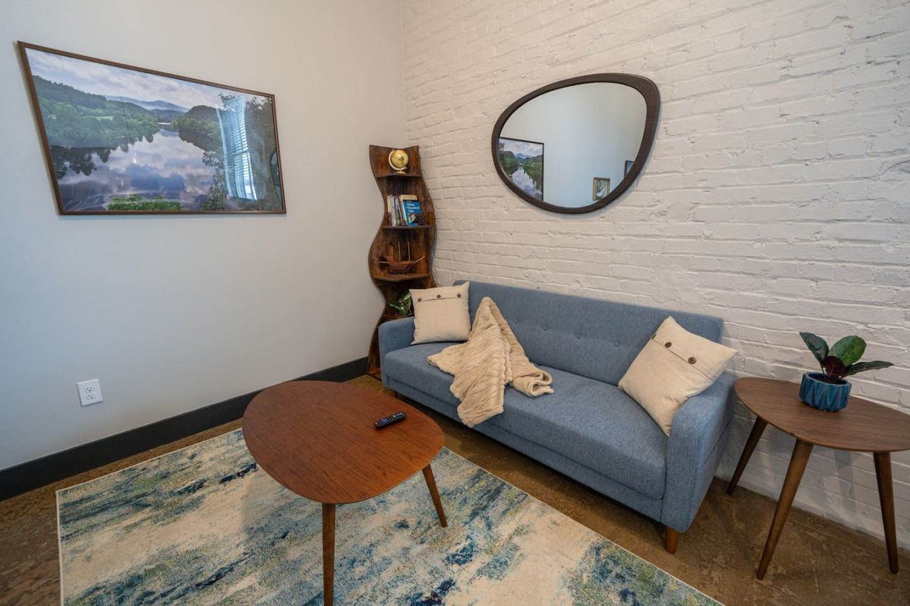 / nightWelcome to Factory Flats, a newly remodeled 1-bedroom apartment located in the heart of downtown Buchanan, Virginia. This stylish and modern apartment offers all the comforts and conveniences you need for a perfect stay. Inside, you'll find brand new furnishings, including a deluxe king memory foam bed and two TVs—one in the living room and one in the bedroom. Relax and unwind in the beautifully designed space, equipped with everything you need to feel at home. Factory Flats boasts a prime location with a brewery on site, providing a great spot to enjoy local craft beers. You'll also have quick access to the James River, perfect for outdoor activities and scenic views. The apartment is walkable to downtown attractions, allowing you to explore the charming shops, restaurants, and sights of Buchanan with ease. Experience the perfect blend of comfort, convenience, and style at Factory Flats. We look forward to hosting you!