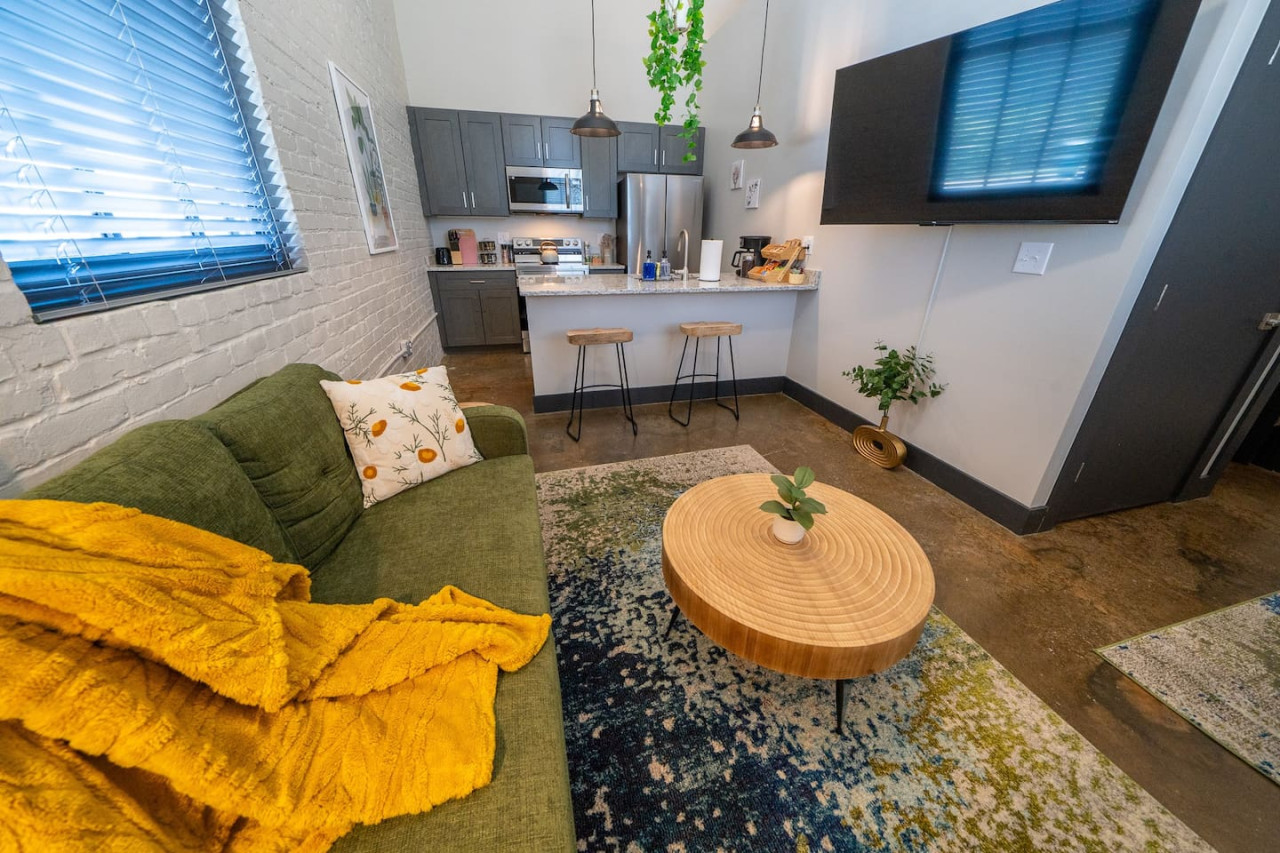 / nightInside, you'll find brand new furnishings, including a deluxe king memory foam bed and two TVs—one in the living room and one in the bedroom. Relax and unwind in the beautifully designed space, equipped with everything you need to feel at home. Factory Flats boasts a prime location with a brewery on site, providing a great spot to enjoy local craft beers. You'll also have quick access to the James River, perfect for outdoor activities and scenic views. The apartment is walkable to downtown attractions, allowing you to explore the charming shops, restaurants, and sights of Buchanan with ease. Experience the perfect blend of comfort, convenience, and style at Factory Flats. We look forward to hosting you!