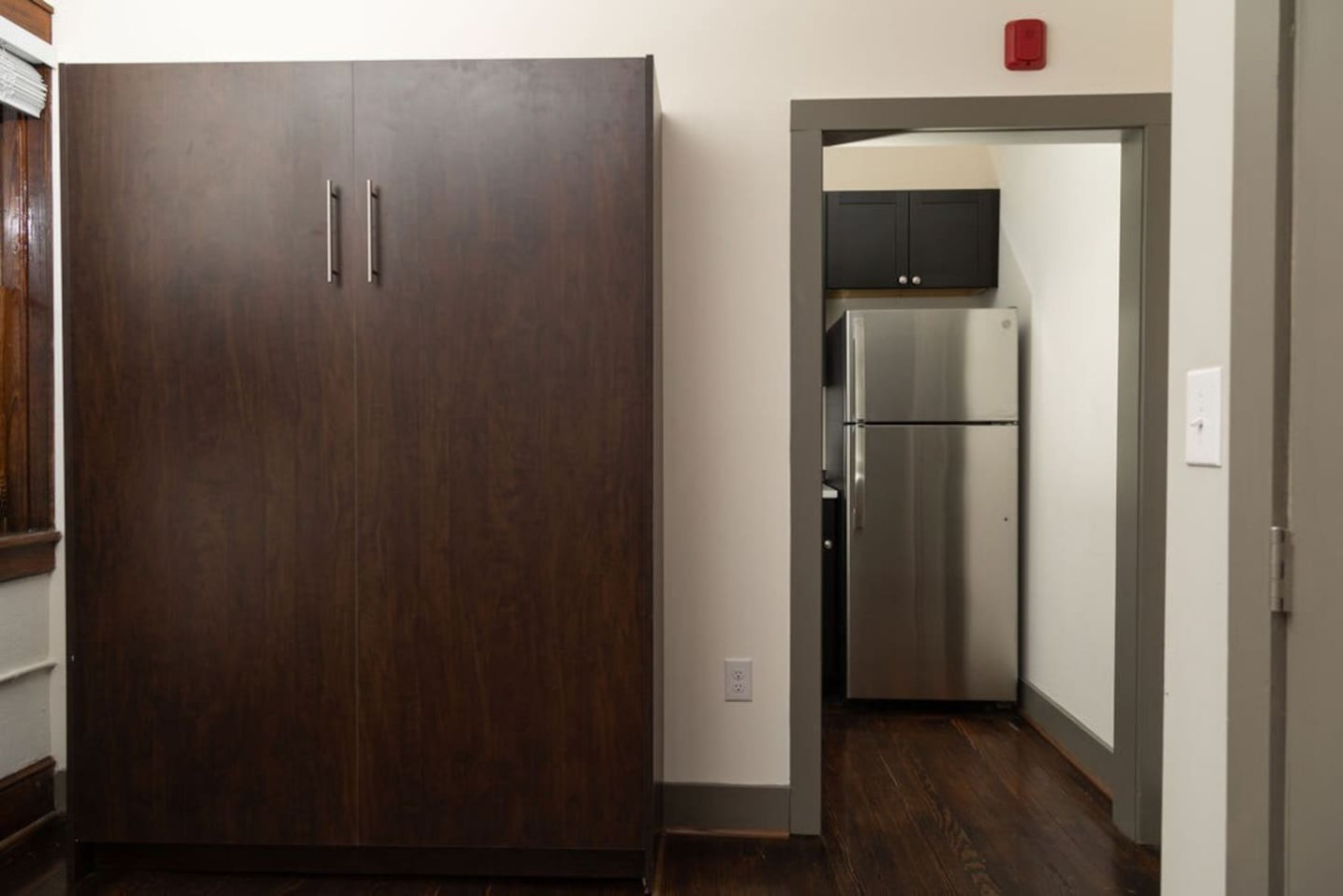 / nightThis is a studio apartment located close to downtown Roanoke. It is newly renovated with luxury furnishings from TXTUR furniture. The apartment is bright and sunny and features a full-size murphy bed for sleeping and fully stocked kitchen as well as in-unit washer and dryer. Lots of nearby food and drink options like Tuco's Tacos, Beamer's 25, Golden Cactus Brewing, Big Lick Brewing and others are a short drive or bike ride away. This is a petite studio with full size (double) murphy bed and full bath. It features a full kitchen, washer dryer in the unit as well as TV, Fast Wifi, Keyless entry and comfortable linens. Guests have access to the second story deck for working or relaxing. Keyless entry provides 24 hour check in and easy access. Check in instructions will be sent via Text message to the number on you account. All of our units are 100% self check in. The west end of Roanoke is experiencing a renaissance with new restaurants, breweries, and renovations that allow both visitors and residents to experience the best of downtown Roanoke. You are a short drive (or a quick scooter or bike ride) from some of the best features of downtown, with quick access to the freeway and Salem. Free parking is provided on-site. Uber / Lyft / e-scooters are all available for hire. We operate under the business name Stay Roanoke. This unit requires you to climb 1 set of stairs to gain entry. Quiet hours are from 10pm - 8am. Please note the age of this building means thinner walls and creaky floors. Please have respect for your fellow guests and refrain from loud noises during quiet hours. Security deposit of $1000 required on all 30+ day reservations. Please message us for details. We require all guests to sign a rental agreement prior to check in. This document will be sent over SMS text messaging to the number you have on file with your booking agency. The building is located about 15 minutes from the Roanoke Airport, 1 hour from Virginia Tech University, 5 minutes to Roanoke Memorial Hospital, and 10 minutes from Roanoke Community Hospital.