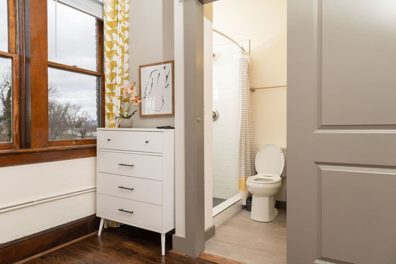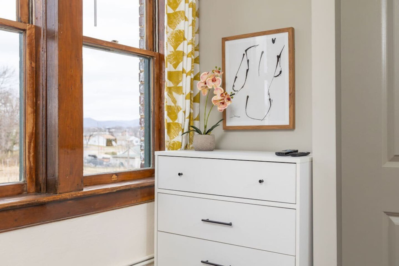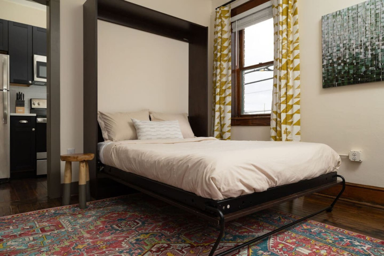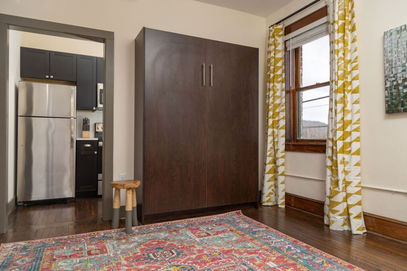 / nightThis is a studio apartment located close to downtown Roanoke. It is newly renovated with luxury furnishings from TXTUR furniture. The apartment is bright and sunny and features a full-size murphy bed for sleeping and fully stocked kitchen as well as in-unit washer and dryer. Lots of nearby food and drink options like Tuco's Tacos, Beamer's 25, Golden Cactus Brewing, Big Lick Brewing and others are a short drive or bike ride away. This is a newly remodeled 1 bedroom apartment with queen bed and full bath. It features a full kitchen, washer dryer in the unit as well as TV, Fast Wifi, Keyless entry and comfortable linens. Guests have access to the second story deck for working or relaxing. The historic building and luxury furnishings are sure to provide a comfortable stay. Keyless entry provides 24 hour check in. Check in instructions are sent via text message to the number on your account. All our units are 100% self check in. The west end of Roanoke is experiencing a renaissance with new restaurants, breweries, and renovations that allow both visitors and residents to experience the best of downtown Roanoke. You are a short drive (or a quick scooter or bike ride) from some of the best features of downtown, with quick access to the freeway and Salem. Free parking is provided on-site. Uber / Lyft / e-scooters are all available for hire. We operate under the business name Stay Roanoke. This unit requires you to climb 1 set of stairs to gain entry. Quiet hours are from 10pm - 8am. Please note the age of this building means thinner walls and creaky floors. Please have respect for your fellow guests and refrain from loud noises during quiet hours. Security deposit of $1000 required on all 30+ day reservations. Please message us for details. We require all guests to sign a rental agreement prior to check in. This document will be sent over SMS text messaging to the number you have on file with your booking agency. The building is located about 15 minutes from the Roanoke Airport, 1 hour from Virginia Tech University, 5 minutes to Roanoke Memorial Hospital, and 10 minutes from Roanoke Community Hospital.